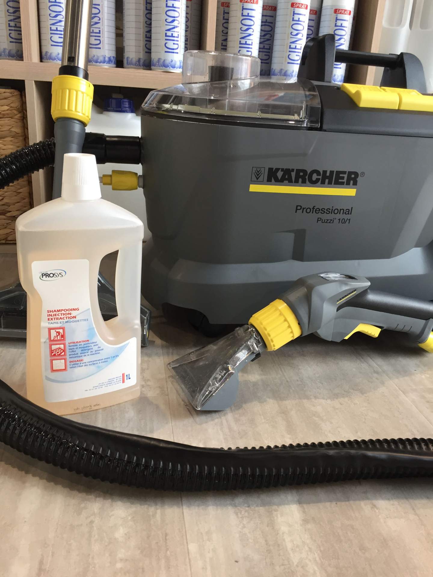 Nous mettons également en location un injecteur-extracteur, idéal pour le nettoyage de vos tapis, canapés et sièges de voiture. Soumise à une caution de 200€, la location est fixée à 28.90 € la journée et à 45.90 € le week-end (ou 2 jours). Notre shampoing professionnel est vendu séparément à 12.90 €. Retrouvez aussi en boutique notre sélection de lessives et parfums de linge.
